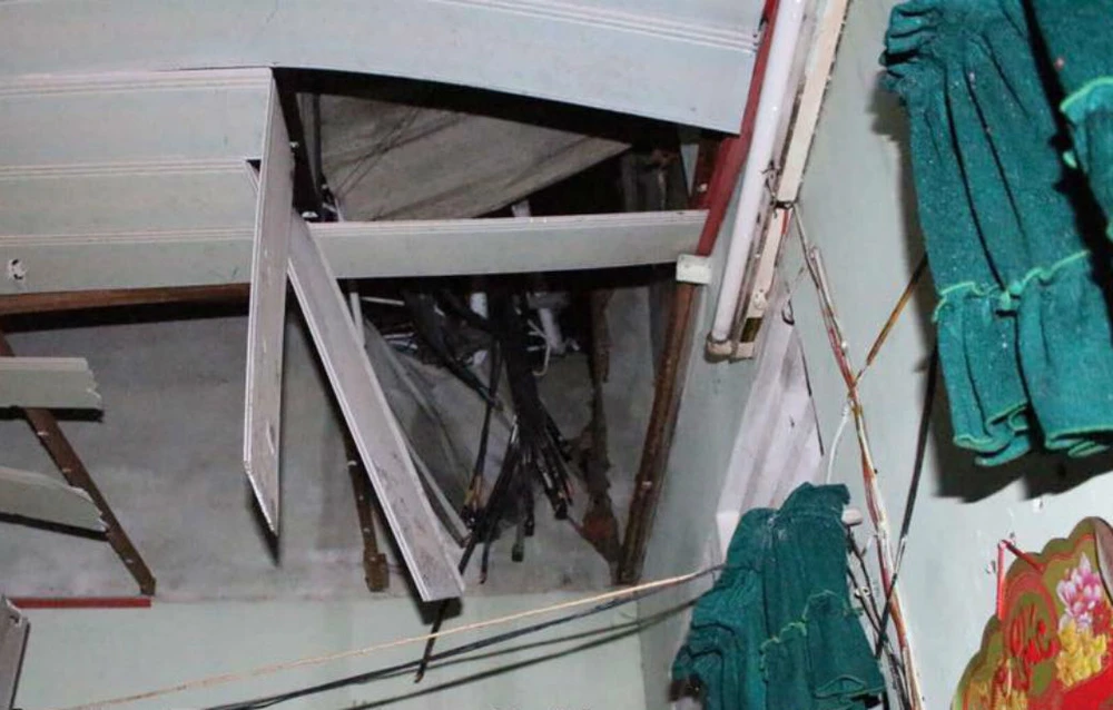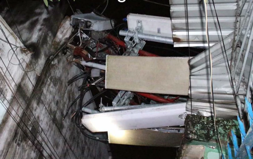 Cột ăng-ten viễn thông gãy đổ đè lên hai nhà dân tại thị xã Dĩ An