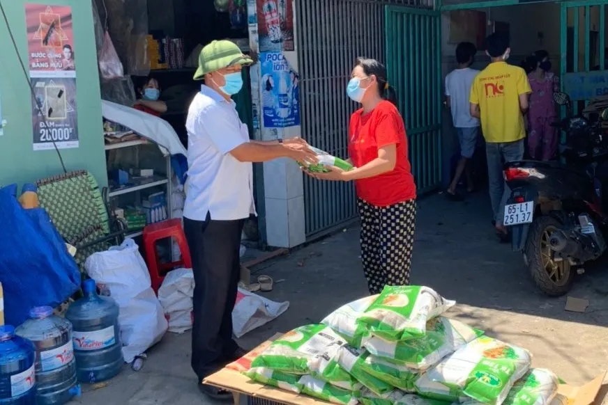 Chính quyền địa phương phát lương thực, thực phẩm đến tận nơi cho người dân. Ảnh: BTG