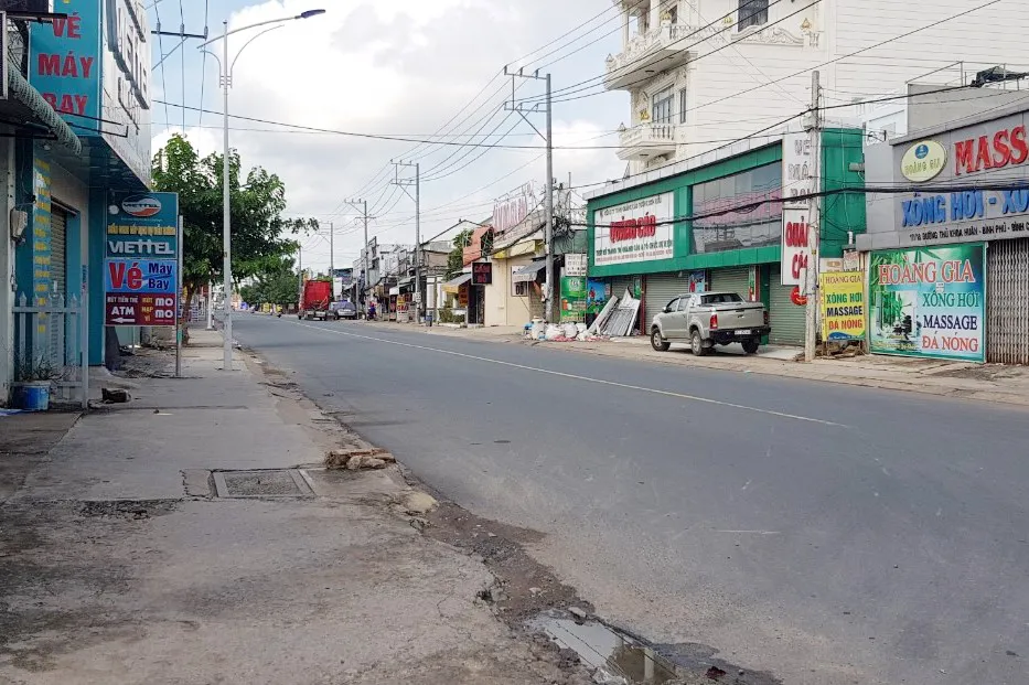 Đường phố tại phường Bình Chuẩn văng tanh, không một bóng người. Ảnh: LA