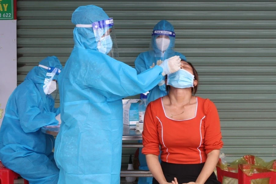 Lực lượng y tế bắt đầu xét nghiệm nhằm tách F0 trong vùng "khóa chặt". Ảnh ghi nhận tại phường Bình Chuẩn vào sáng 22-8. Ảnh: NH