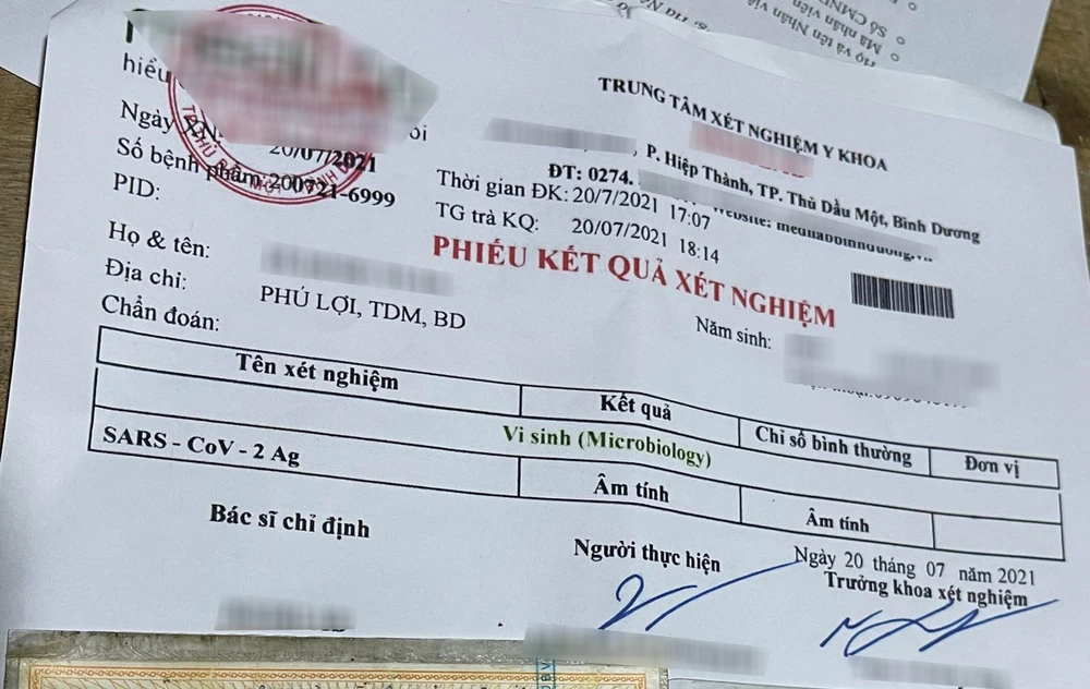 Ngày 25-7, Công an TP Thủ Dầu Một (Bình Dương) cho biết đang tiến hành điều tra làm rõ để xử lý, những người làm giấy xét nghiệm COVID-19 giả bán cho người dân.