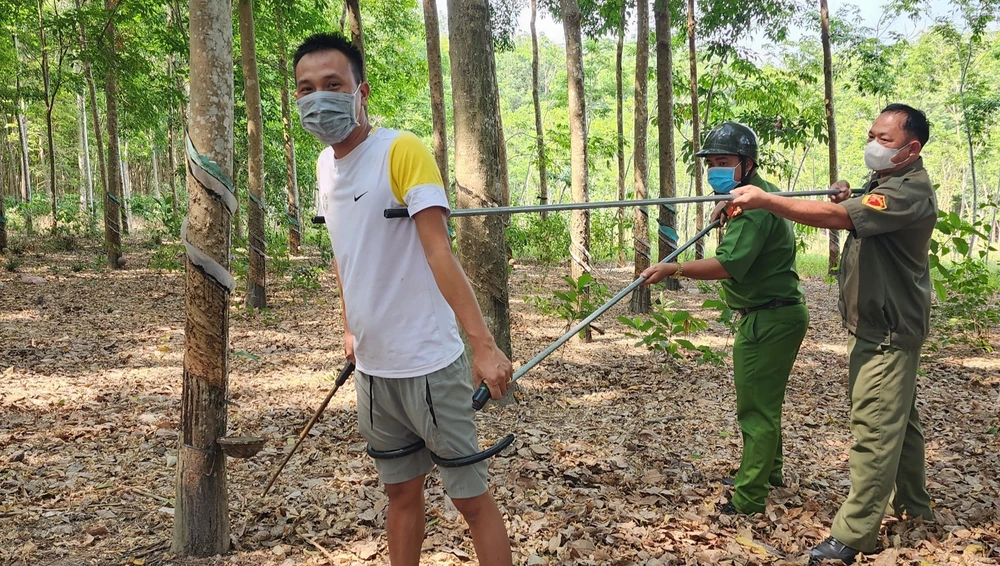 Để quá trình truy bắt tội phạm đạt hiệu quả và bảo đảm an toàn cho người dân và lực lượng công an, Công an xã Tân Long đã có ý tưởng “chế” dụng cụ này để thử nghiệm.