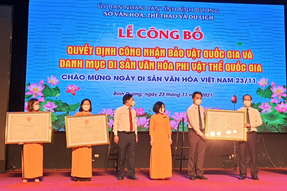 Ngày 23-11, Sở Văn hóa, Thể thao và Du lịch Bình Dương tổ chức lễ công bố một bảo vật quốc gia và hai di sản văn hóa phi vật thể.