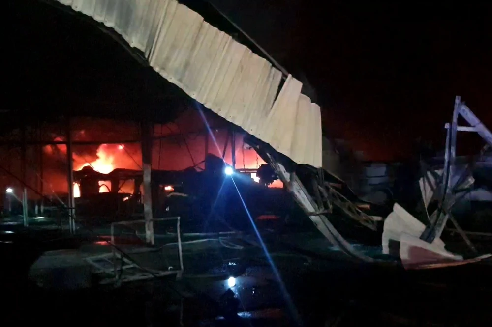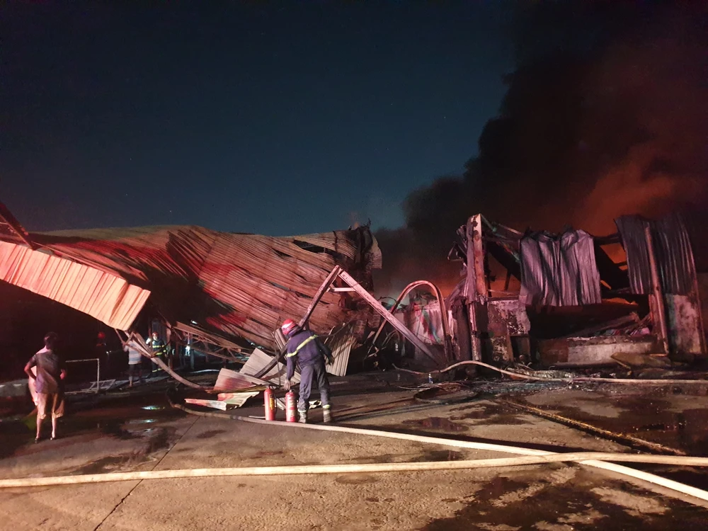 Cháy lớn khiến khu nhà xưởng bị đổ sập hoàn toàn. Ảnh: KD