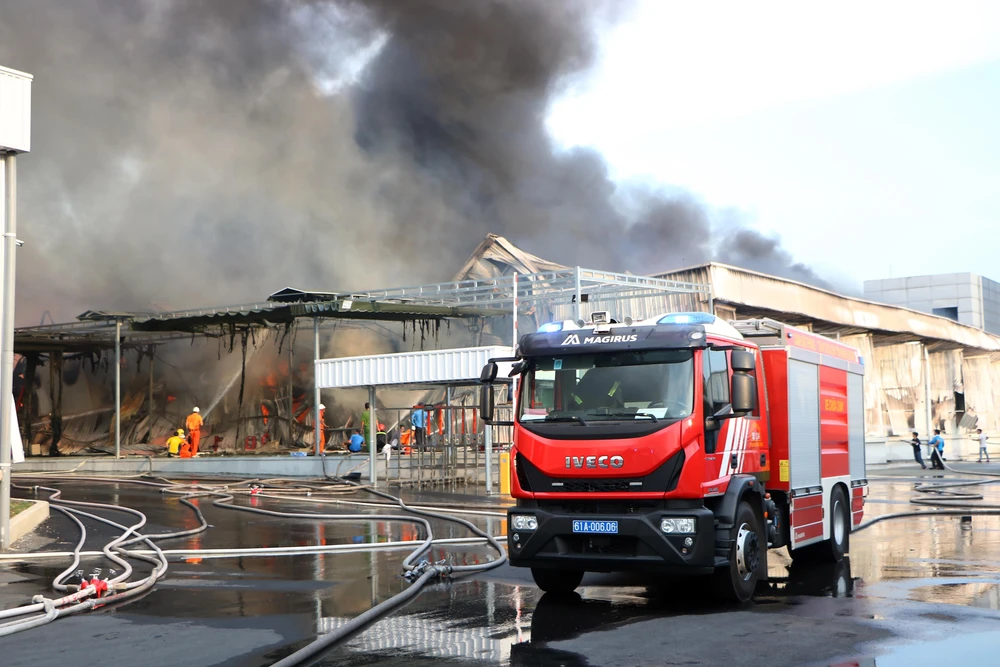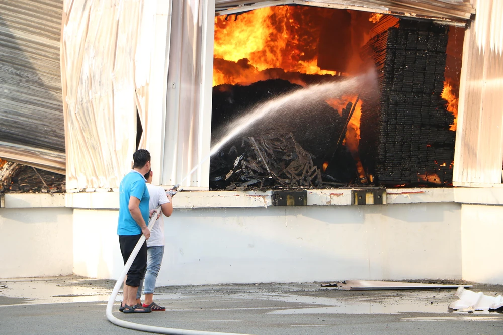 Ngay sau đó, lửa bốc cháy dữ dội tại kho chứa thành phẩm của công ty. Do kho hàng đều chứa các sản phẩm dễ cháy nên ngọn lửa mỗi lúc một lớn, cột khói bốc cao hàng chục mét.