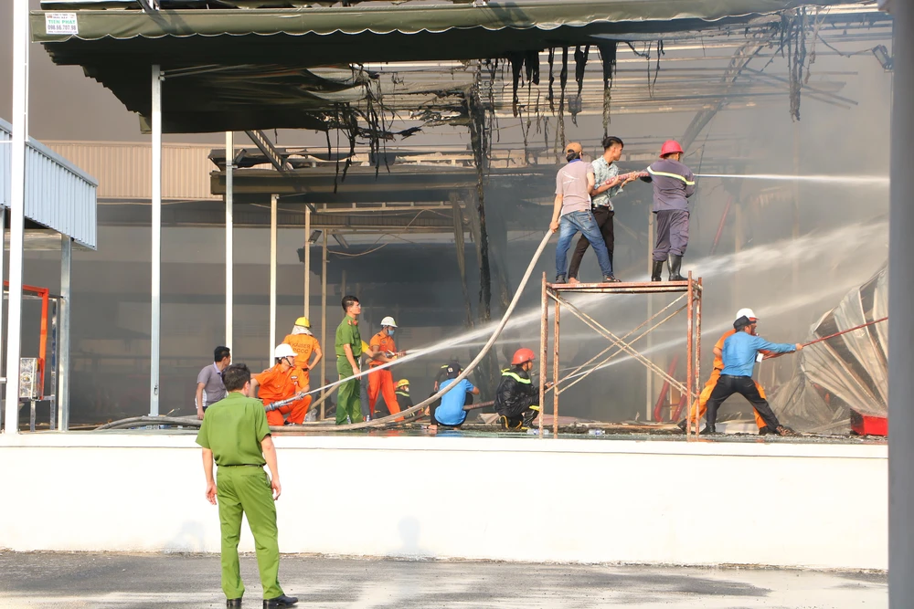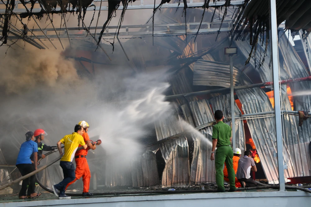 Lực lượng chữa cháy tại chỗ cùng lực lượng chữa cháy chuyên nghiệp nỗ lực khống chế ngọn lửa.