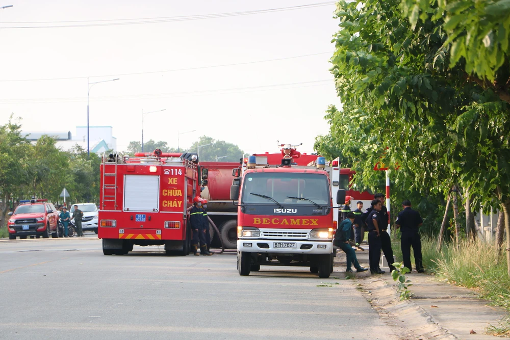 Ghi nhận tại hiện trường, diện tích đám cháy ước tính khoảng hàng ngàn mét vuông. Có khoảng gần 20 xe chữa cháy tham gia khống chế ngọn lửa, các công ty bên cạnh cũng tăng cường lực lượng chữa cháy tại chỗ để hỗ trợ.