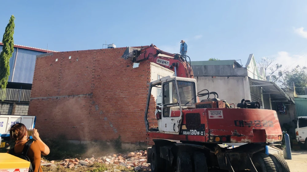 Khi bị xử phạt buộc tháo dỡ, ông Việc đã tự tháo dỡ 6 căn. Còn 12 căn nhà (gần 500 mét vuông) còn lại không tháo dỡ nên cơ quan chức năng thành lập đoàn cưỡng chế.