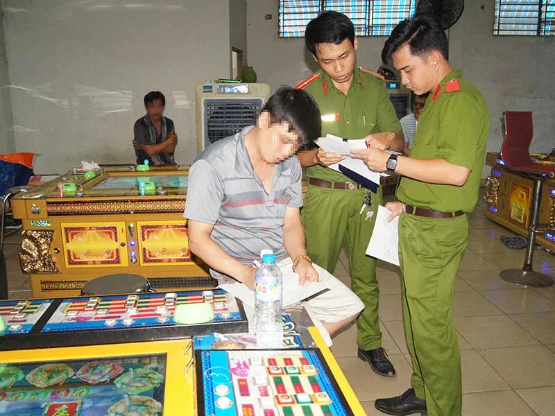Công an kiểm tra một tụ điểm game bắn cá vi phạm. Ảnh: VH