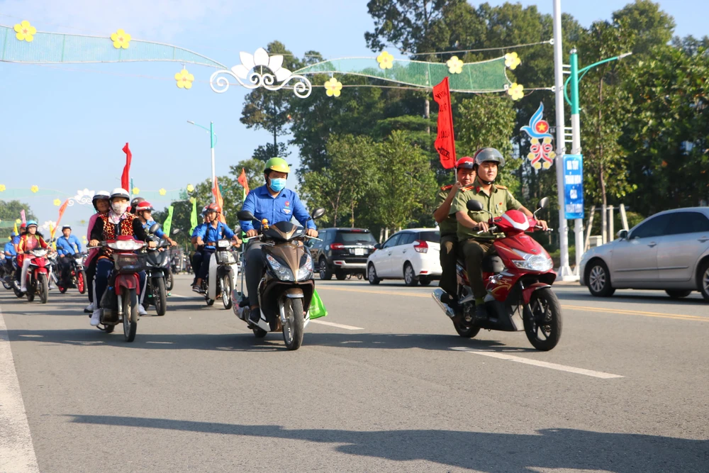 Đoàn viên thanh niên diễu hành tuyên truyền về tác hại của ma túy, kêu gọi mọi người chung tay đẩy lùi ma túy.