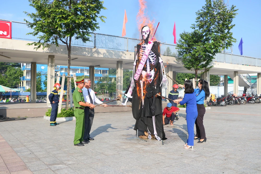 Lãnh đạo tỉnh Bình Dương đốt hình nộm, kêu gọi mọi người tránh xa ma túy.