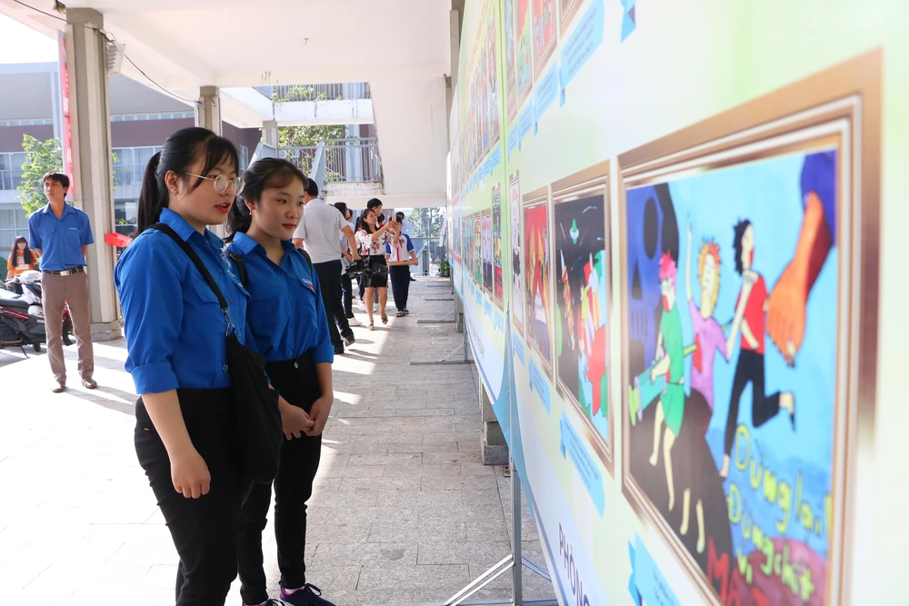 Triển lãm tranh vẽ tuyên truyền kêu gọi mọi người tránh xa ma túy.