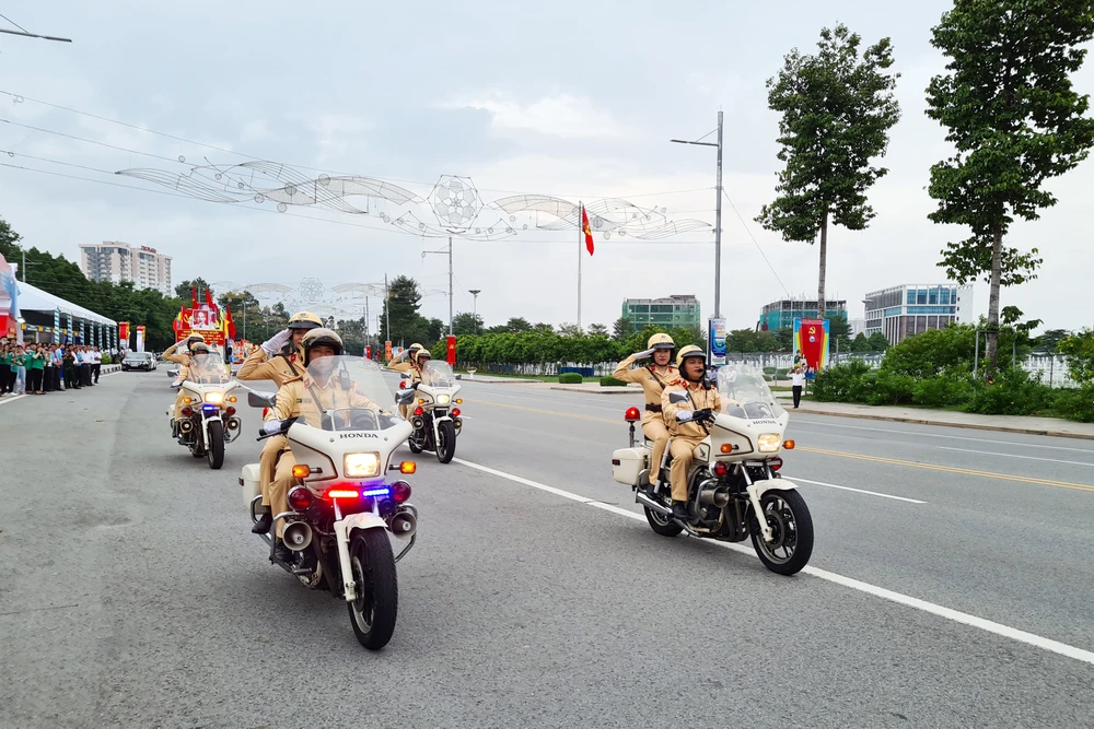 Đoàn xe hoa diễu hành tại triển lãm, chào mừng Đại hội Đại biểu Đảng bộ tỉnh Bình Dương lần thứ XI (nhiệm kỳ 2020-2025). Ảnh: LÊ ÁNH