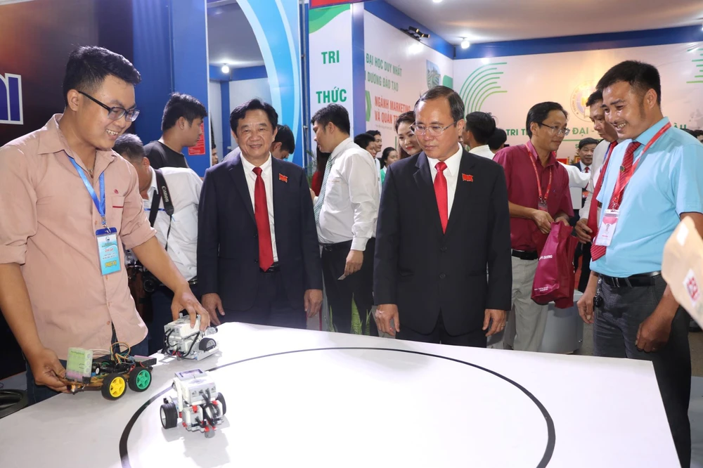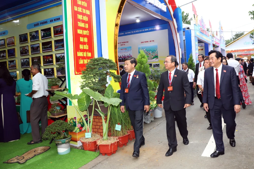 Lãnh đạo tỉnh Bình Dương tham quan các gian hàng trưng bày. Ảnh: QUỐC CHIẾN