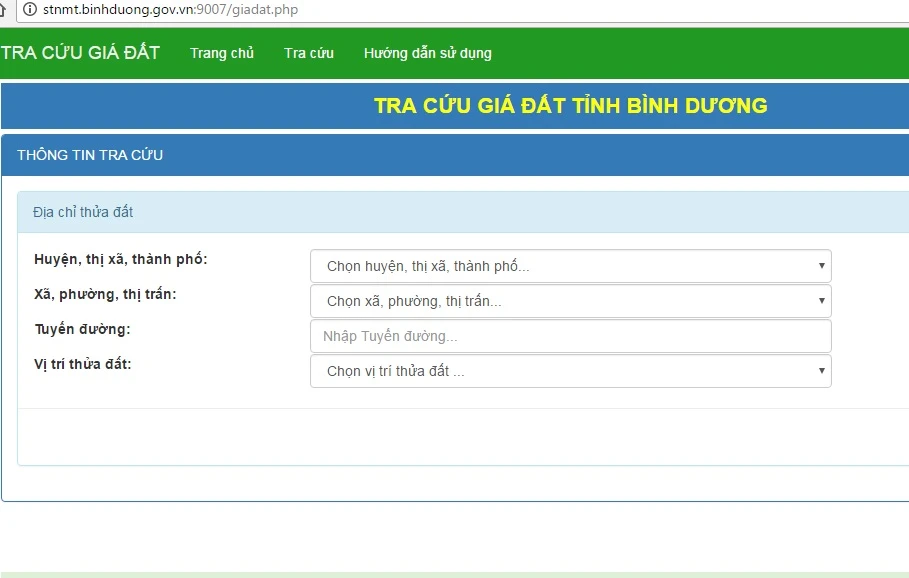 Phần mềm tra cứu giá đất trực tuyến của Sở TN&MT Bình Dương.