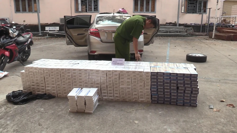 Xe ô tô cùng số thuốc lá bị bắt giữ.