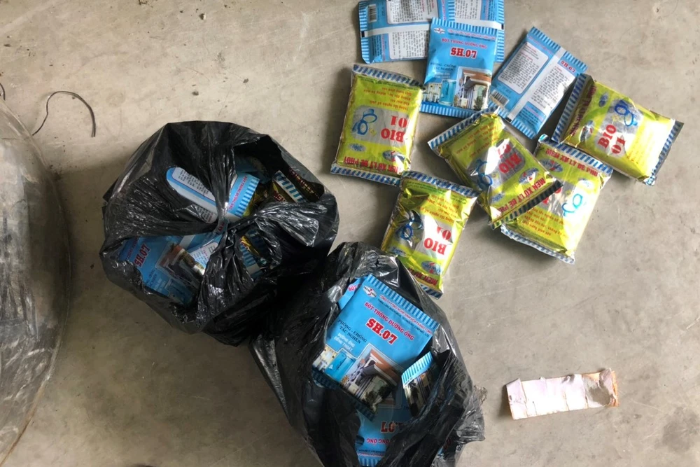 Những gói thông cống, đôi nam nữ đưa cho người dân. Ảnh: Công an cung cấp