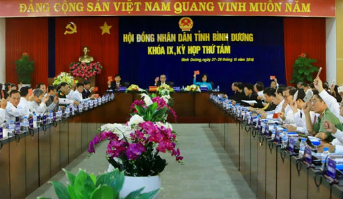 Toàn cảnh kỳ họp HĐND khóa IX, kỳ họp 8 của tỉnh Bình Dương.