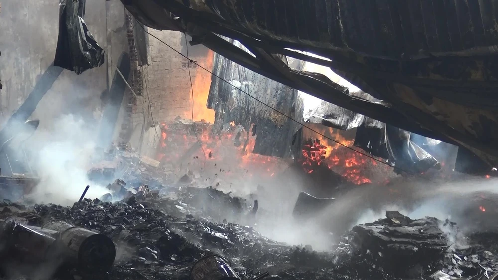 Đến khoảng 16 giờ, cùng ngày thì lực lượng chữa cháy cơ bản khống chế hỏa hoạn, không để lan sang các khu vực khác. Tuy nhiên, lửa bên trong các khu nhà xưởng vẫn đang bốc cháy dữ dội. Khu nhà xưởng rộng hàng ngàn mét vuông của hai công ty bị đổ sập.