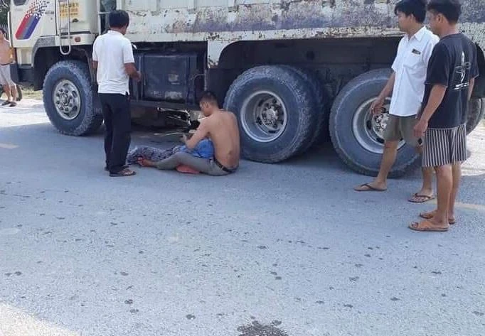 Cú va chạm mạnh khiến, người phụ nữ bị cuốn vào gầm xe ben tử vong tại chỗ. Hay tin mẹ bị tai nạn, người con trai đến hiện trường, ôm thi thể mẹ gào khóc thảm thiết.
