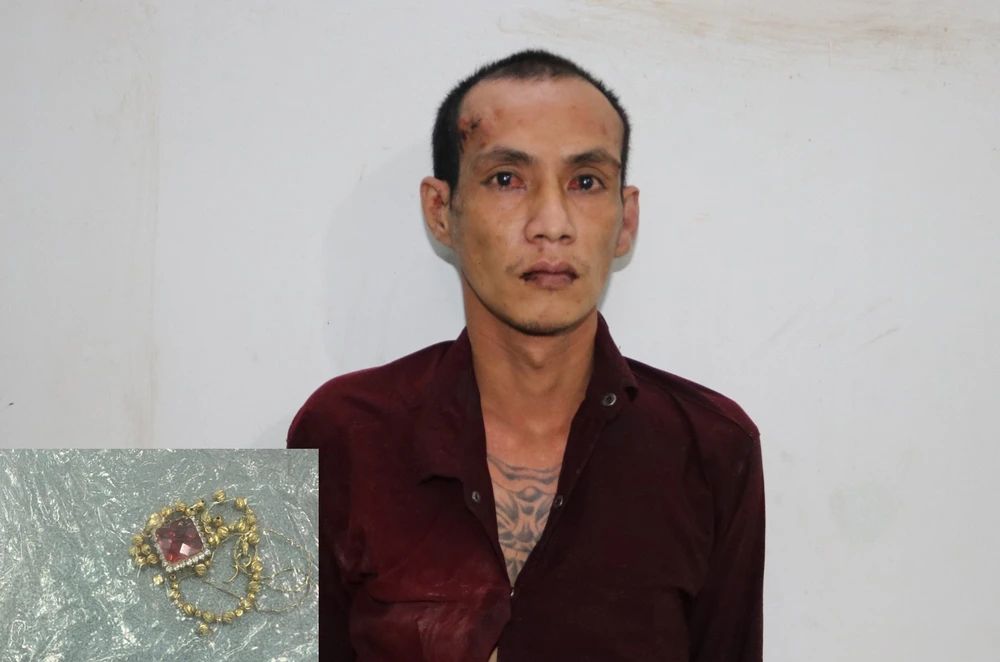 Đăng bị bắt cùng sợi dây chuyền mới cướp được của người phụ nữ. Ảnh: CACC
