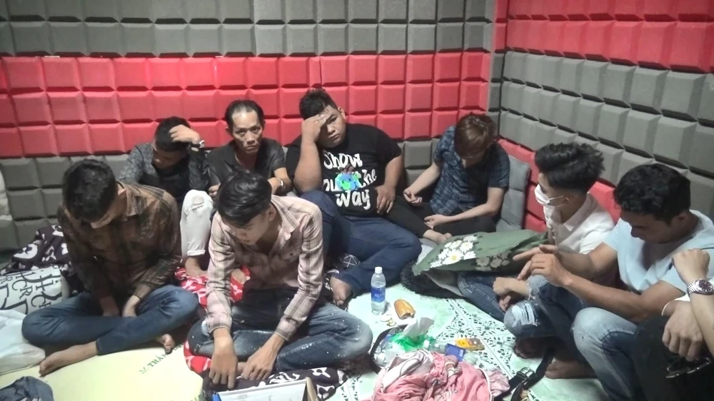 Tại đây, cơ quan công an phát hiện hàng chục thanh niên nam, nữ đang tụ tập sử dụng trái phép chất ma tuý trong tiếng nhạc chát chúa.