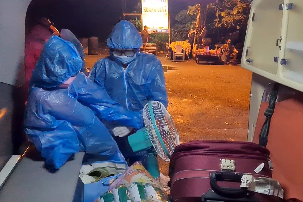 Trong màn đêm tĩnh lặng, chiếc xe cấp cứu hú còi liên hồi từ từ tiến về khu cách ly. Trong xe mọi người nhìn nhau từ đôi mắt còn lộ ra ngoài không nói lời nào. Riêng chỉ có bé gái cứ khóc thút thít không thôi vì nóng.