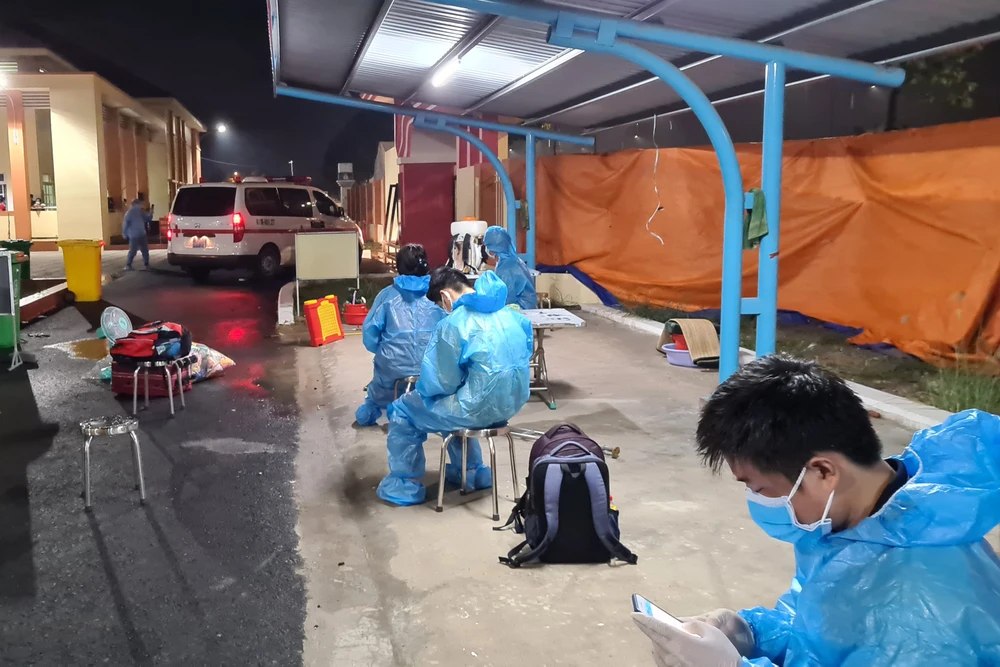 Đến gần 21 giờ, chiếc xe cấp cứu mới đến khu cách ly tập trung tại trường Tiểu học Phú Lợi 2 (phường Phú Lợi, TP Thủ Dầu Một).