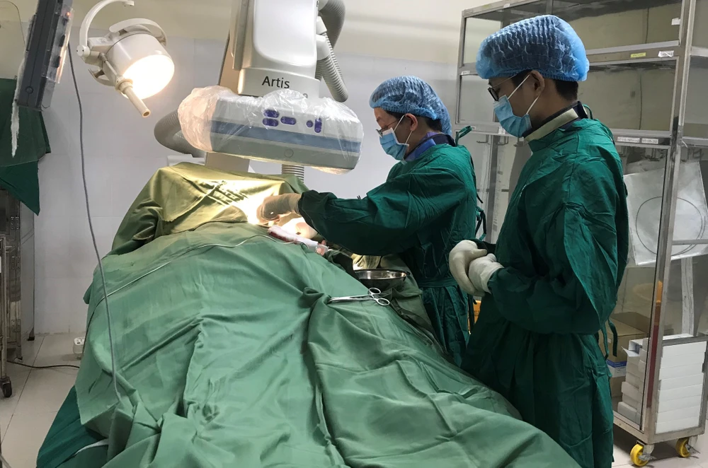 Đây là ca đặt máy tạo nhịp tim vĩnh viễn cho bệnh nhân, lần đầu tiên thực hiện tại Bệnh viện đa khoa tỉnh Bình Dương. Ảnh: Bệnh viện cung cấp