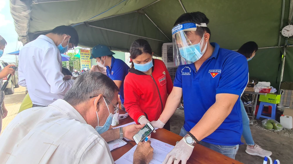 Chốt kiểm soát dịch bệnh tại phường Thái Hòa (thị xã Tân Uyên). Ảnh: LÊ ÁNH