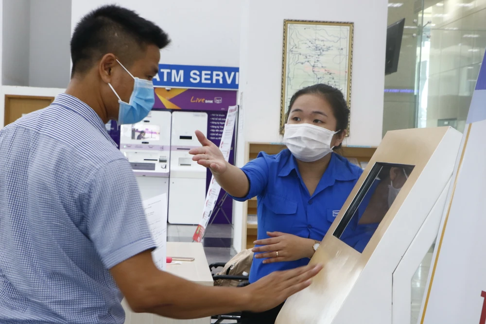 Đề án Thành phố thông minh của Bình Dương đã đặt con người và tri thức làm trọng tâm phát triển. Trong ảnh: Người dân được cán bộ hướng dẫn tận tình khi đến Trung tâm hành chính công tỉnh Bình Dương. Ảnh: LÊ ÁNH
