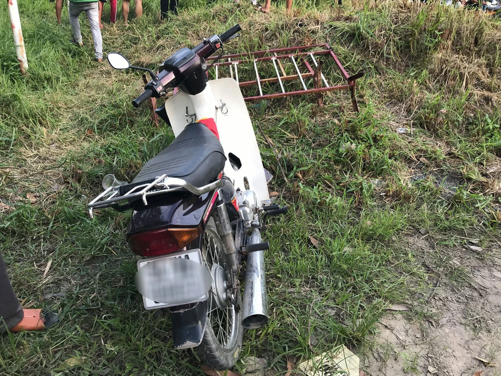 Chiếc xe máy của nạn nhân bỏ lại hiện trường.