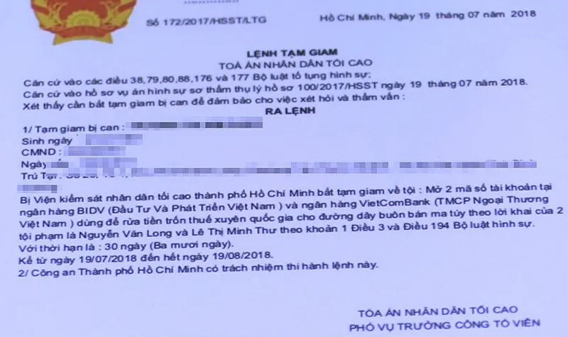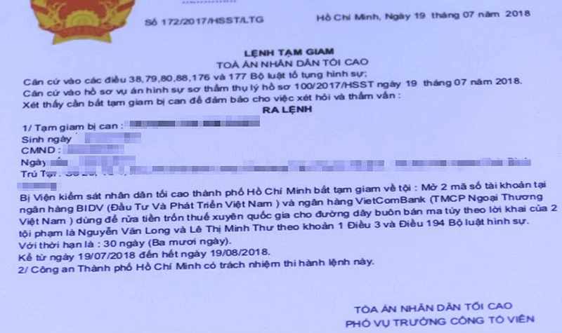 Sau đó nhóm lừa gửi lệnh khởi tố, lệnh bắt tạm giam ghi rõ họ tên, ngày tháng năm sinh, số CMND, địa chỉ của bà H.