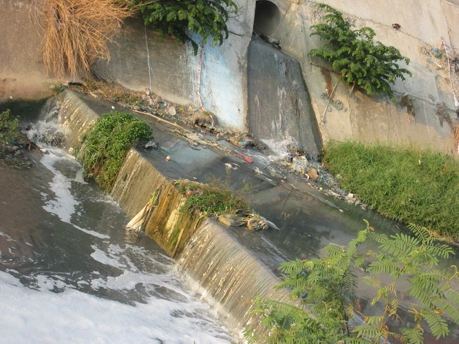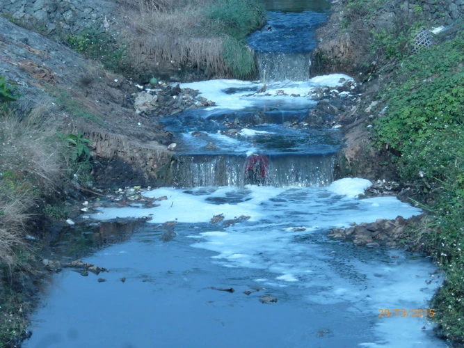 Thác nước bẩn được thải ra từ các khu công nghiệp khiến nước của một con kênh ở khu phố Đông ba, P. Bình Hòa, Thị Xã Dĩ an (Thuận An, Bình Dương) bốc mùi hôi thối