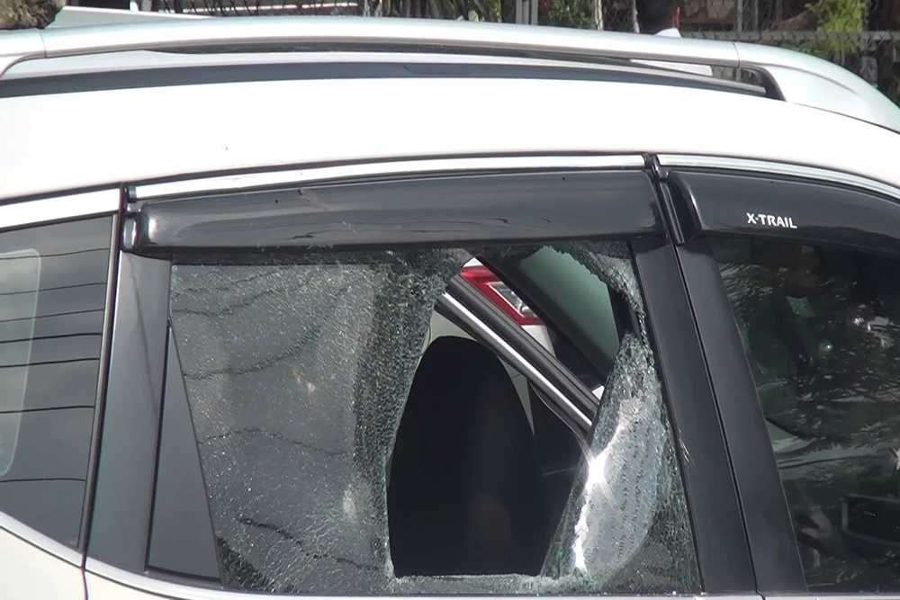 Chiếc xe ô tô bị đập phá. Ảnh: LÊ ÁNH
