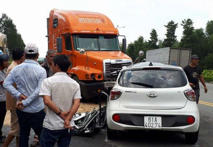 Vào thời điểm trên, ô tô bốn chỗ chạy trong khu công nghiệp hướng ra quốc lộ 13. Ngồi trong xe có ba người khác. Khi xe chạy đến trước ngã ba giao nhau với đường NH13 thì xe du lịch bất ngờ mất lái, lao sang đường ngược lại. Lúc này container chạy tới, không kịp xử lý khiến hai xe đối đầu nhau.