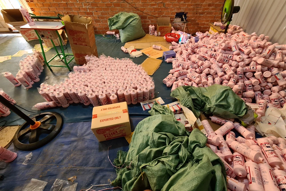 “Cơ sở này đã sản xuất hàng giả trong thời gian dài, hàng ngày tuồn ra thị trường số lượng lớn hàng giả. Để tránh sự phát hiện của sơ quan chức năng, chủ cơ sở đã chọn vị trí sâu trong khu dân cư. Các tem nhãn cũng được sản xuất rất giống hàng thật nên rất khó bị phát hiện”, thiếu tá Kiên cho biết thêm.