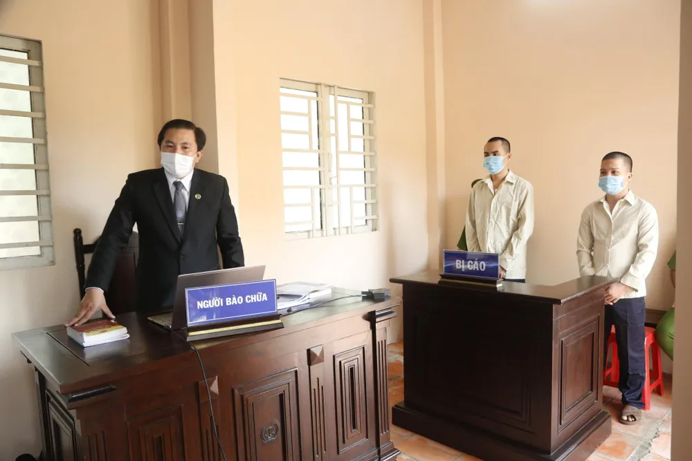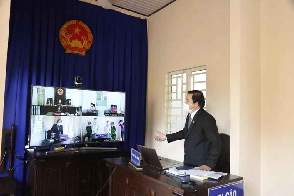 Luật sư đang bào chữa tại phiên tòa trực tuyến. Ảnh: CTV