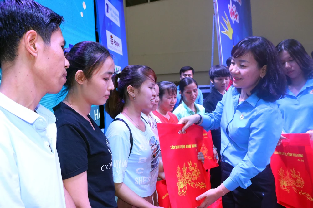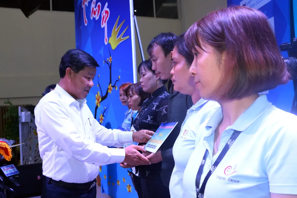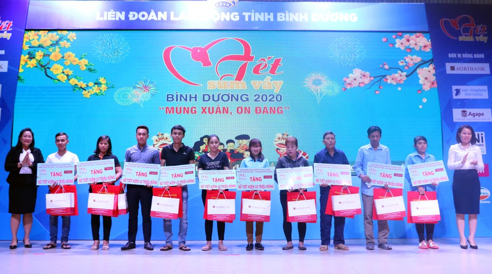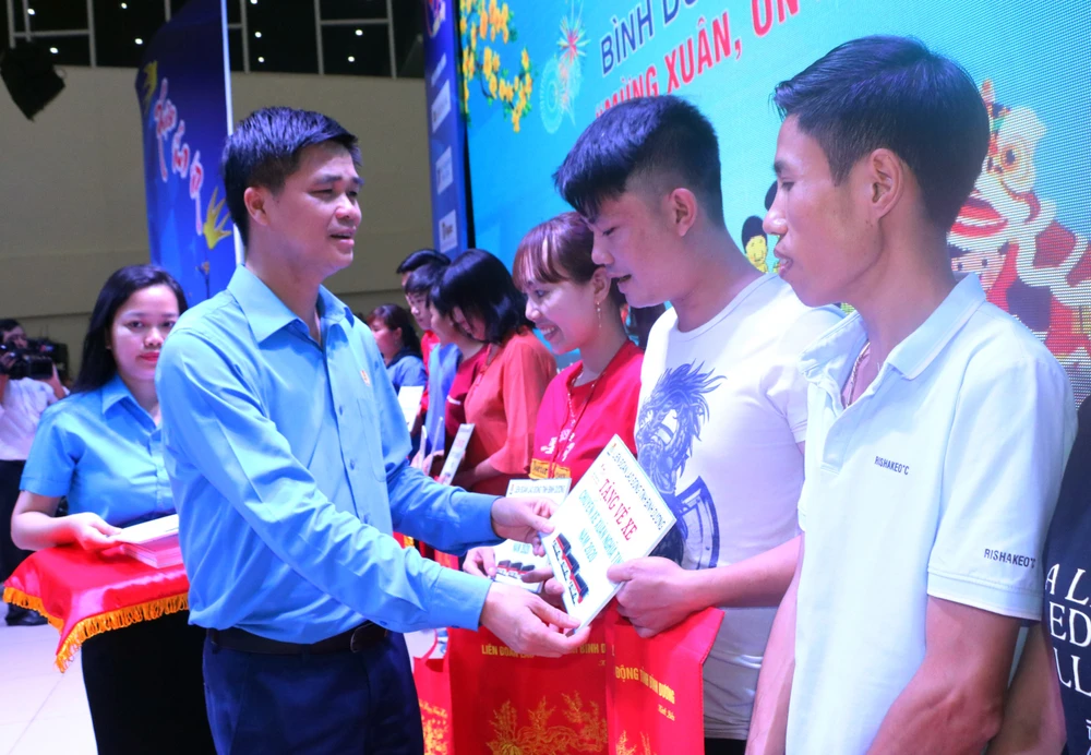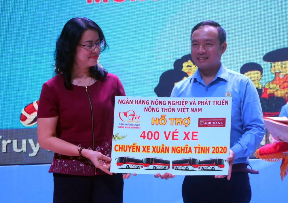 Bên cạnh đó, Liên đoàn Lao động cũng trao tặng 3.500 vé xe cho công nhân lao động có quê các tỉnh miền Tây, miền Trung, miền Bắc có hoàn cảnh khó khăn đang làm việc ở Bình Dương về quê đón tết trên các “Chuyến xe Xuân nghĩa tình”.