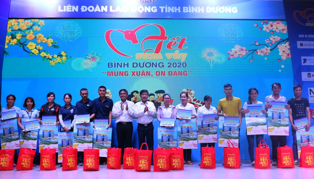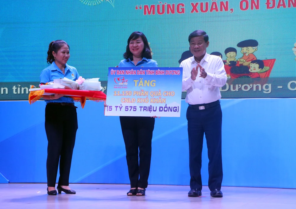 Tại chương trình ý nghĩa này, ông Trần Thanh Liêm, Chủ tịch UBND tỉnh Bình Dương, đã trao tặng bảng tượng trưng 11.150 phần quà cho công nhân lao động có hoàn cảnh đặc biệt khó khăn không có điều kiện về quê đón tết với tổng giá trị 5 tỉ 575 triệu đồng để Liên đoàn Lao động trao đến tận tay các công nhân lao động.