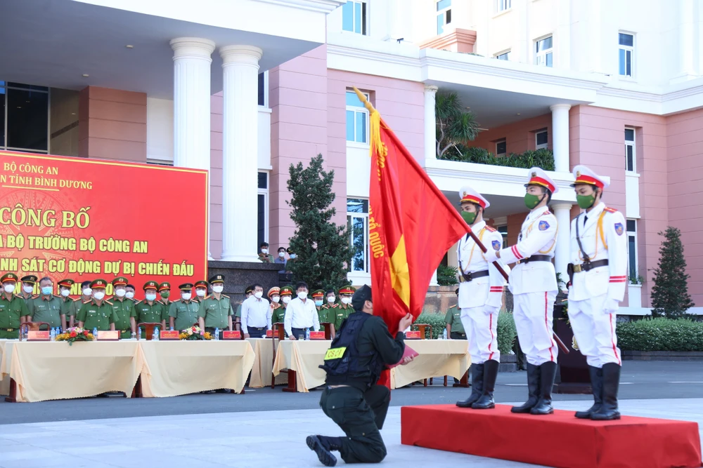 Tại buổi lễ, Ban tổ chức đã công bố quyết định của Bộ trưởng Bộ Công an về việc thành lập Tiểu đoàn Cảnh sát cơ động dự bị chiến đấu thuộc Công an tỉnh Bình Dương.