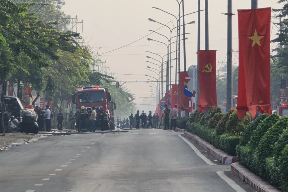 Đến 9 giờ ngày 10-1, Công an TP Thủ Dầu Một (Bình Dương) vẫn đang phong tỏa nghiêm ngặt hiện trường và sơ tán một số hộ dân xung quanh khu vực nghi rò rỉ khí độc.