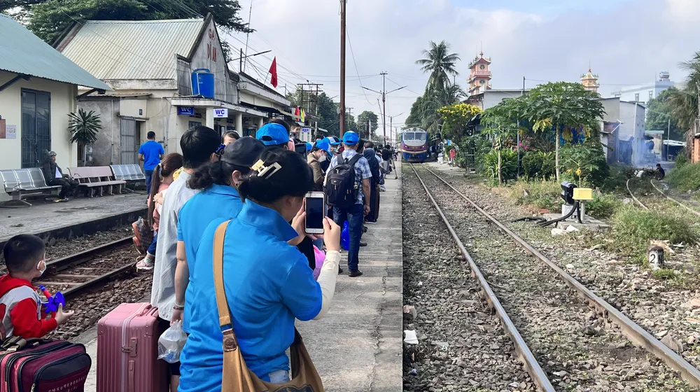 CN-NLĐ lên tàu về quê. Ảnh: LÊ ÁNH |