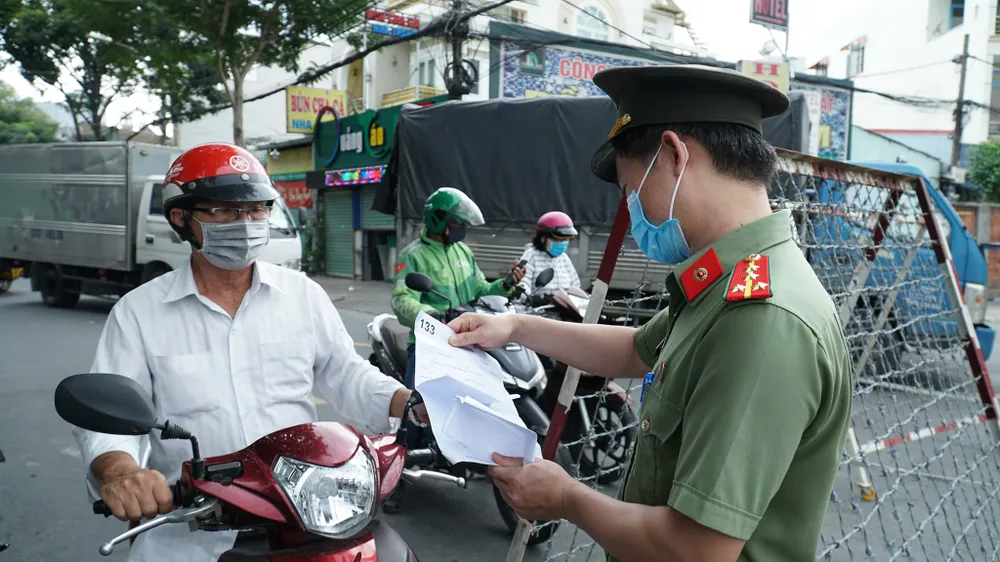Người dân phải có giấy xét nghiệm âm tính với COVID-19 mới được vào TP Dĩ An (Bình Dương). Ảnh: Đài truyền thanh TP Dĩ An.