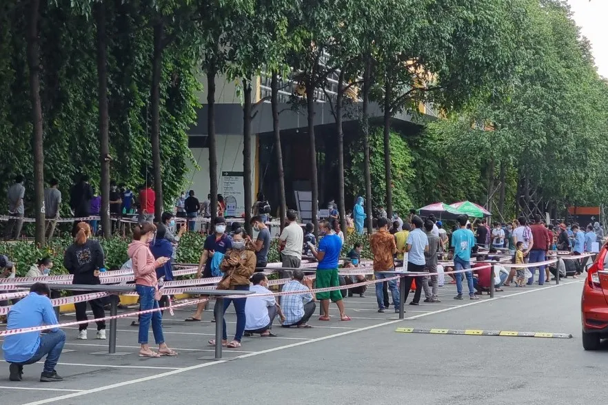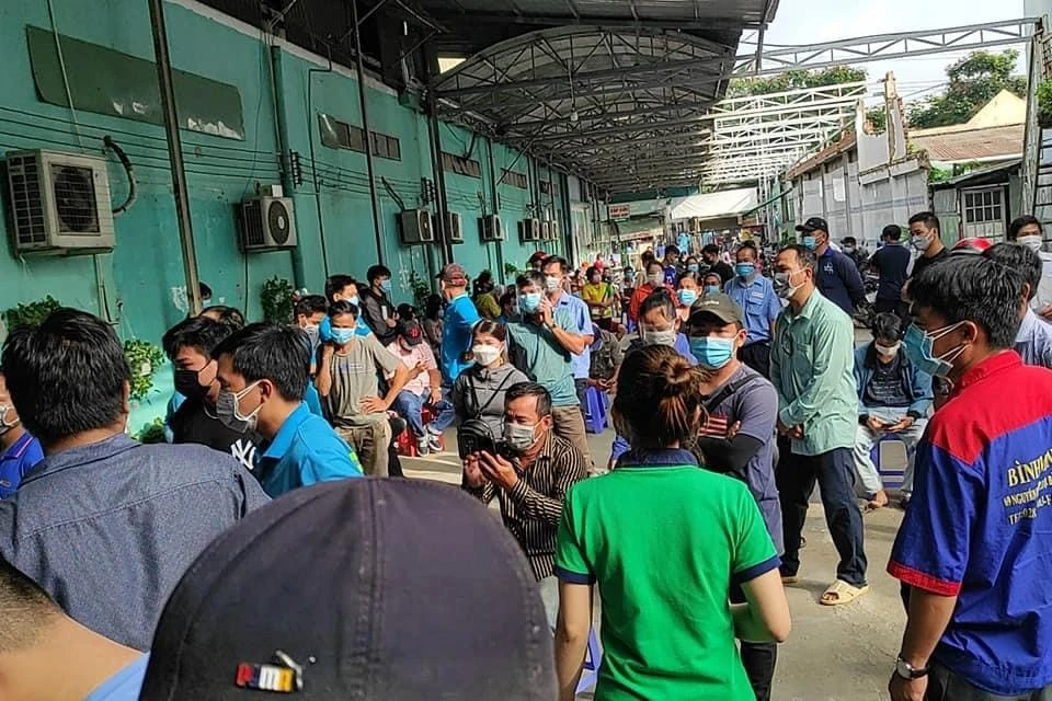 Còn tại Bệnh viện đa khoa Ngọc Hồng (TP Dĩ An, Bình Dương), thì tình trạng còn tệ hơn, hàng trăm người đứng kín sân bệnh viện chen lấn nhau, rất lộn xộn, không giữ khoảng cách an toàn, không đảm bảo quy định về phòng chống dịch.