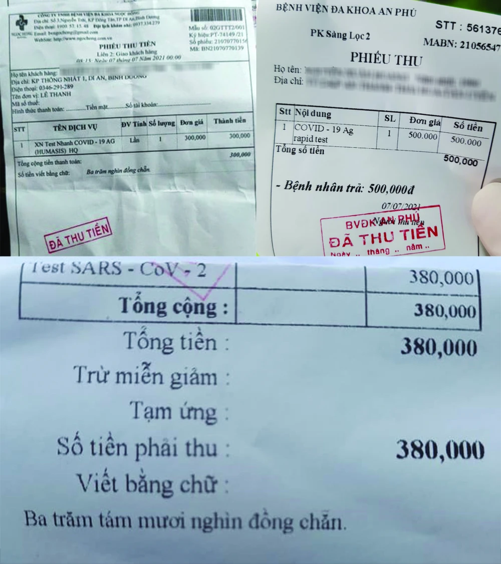Như PLO đã đưa tin, mỗi cơ sở y tế lại có giá test nhanh COVID-19 khác nhau, mỗi nơi một kiểu. Nơi thấp nhất là 250.000, cao nhất là 500.000, một số nơi khác thì có giá 300.000; 350.000; 380.000; 395.000; 400.000; 430.000 đồng.
