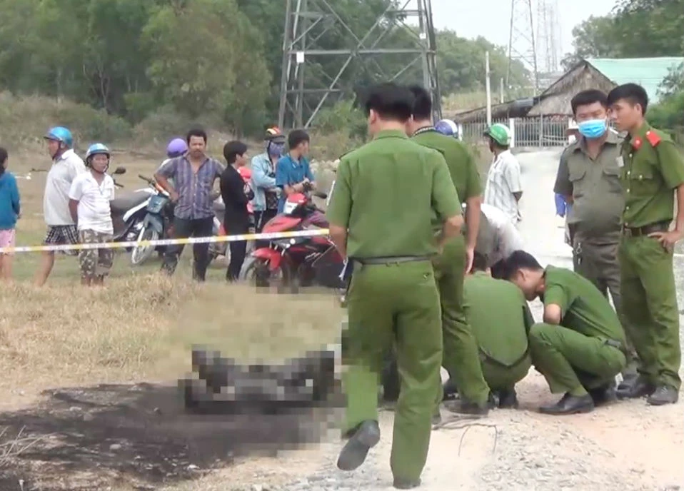 Nạn nhân khoảng 40 tuổi, mặc quần hoa. Bên cạnh thi thể người phụ nữ là xe máy cũng bị cháy một phần phía sau đuôi xe.