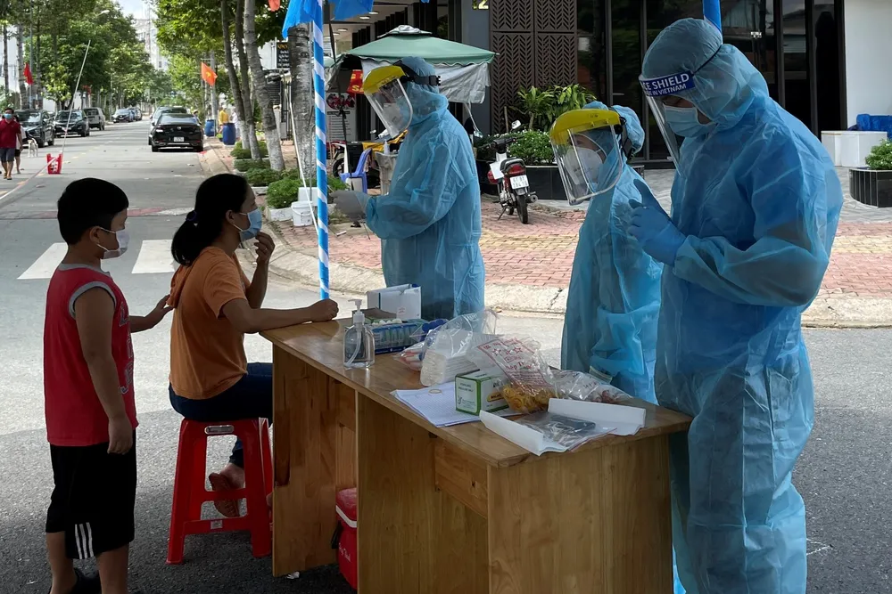 Ngành y tế tỉnh Bình Dương lấy mẫu xét nghiệm người dân những địa điểm bị phong tỏa. Ảnh: LÊ ÁNH