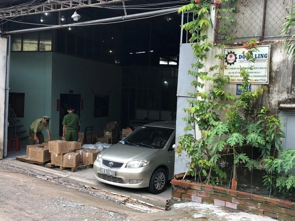 Điển hình như mới đây Cục Quản lý thị trường phối hợp với phòng Cảnh sát kinh tế (Công an tỉnh Bình Dương) đã kiểm tra Công ty TNHH MTV Thương Mại - Dịch Vụ Dong Ling (phường Thuận Giao, thị xã Thuận An).
