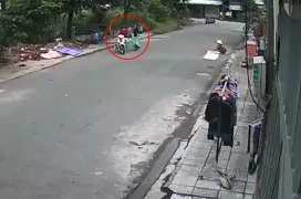 Kẻ cướp táo tợn giật dây chuyển của một phụ nữ tại thị xã Bến Cát. Ảnh: Người dân cung cấp